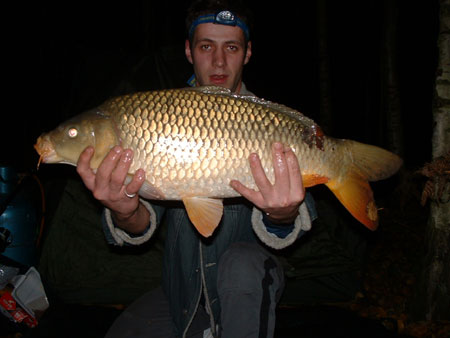 C’est aux cours d’une soirée que nous décidons Grégory et moi d’organiser un week end de pêche. Après une longue discussion nous nous mettons d’accord pour une session de 48 heures sur un canal encore naturel. Vendredi 21 /11/2003 nous prenons la route en direction de ce fameux canal, après 1heure 15 de route nous voila enfin arrivés et bien contents d’être là car la route nous semblait longue. Il est maintenant deux heures, après avoir effectué un rapide repérage nous décidons d’opter pour un poste qui nous semble être productif, après une bonne heure de travail pour monter le campement nous tirons enfin nos lignes, trois heures trente les lignes sont à l’eau, le poisson pour cette période est encore fort en activité, il y a des saut dans tous les coins . Ce n’est que trois heures trente plus tard que nous avons notre premier départ : je ferre et prend tout de suite contact avec le poisson après un joli combat de 15 minutes une belle commune de 10 kilos rentre dans notre épuisette, notre week end commence en force et après un beau combat sur le matelas de réception nous relâchons ce beau poisson.