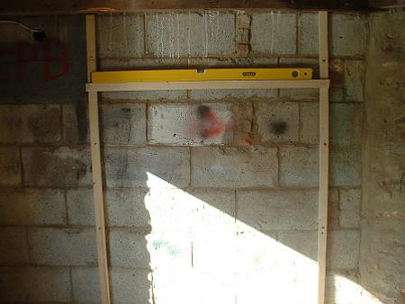 Fixer les 2 montants de 2 mètres bien de niveau et espacés de 101 centimètres (1 centimètre de jeu )