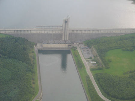 Petit crochet pour un zoom sur le barrage, l’île de l’Eau d’Heure, et le port de plaisance.