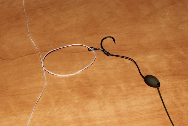 Pour relier la pop up à l'anneau, rien de tel que le bait floss avec noeud coulissant. (Les étapes de ce noeud ont déjà été décrites dans l'article "Montage flottant 360° anti-éjection").