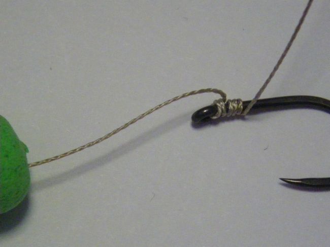 Un autre grand avantage du KD est qu'il est très facile à réaliser au bord de l'eau, c'est un noeud sans noeud où l'on est passé sous le cheveu après les deux premiers tours sur la hampe de l'hameçon.