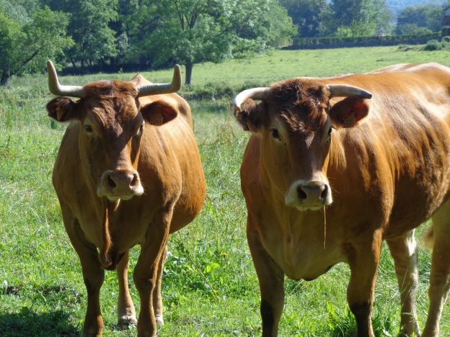 Je m’approche donc de l’endroit d’où proviennent les aboiements et je constate que Koumal est rentré dans un champs où se trouvent 3 vaches limousines et un petit veau.