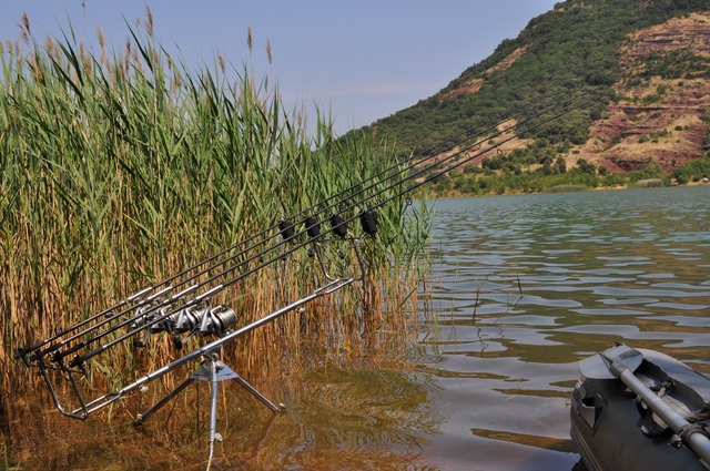 Arrivés sur le lac, la température avoisine déjà les 34 degrés et le vent est assez calme, trop calme .. Quelques carpistes présents sur le lac mais les résultats ne sont pas terribles. Cela ne nous décourage pas, nous sommes gonflés à bloc !
